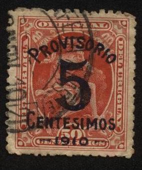 Mercurio 1889. Sobrecargado Provisorio 5 Centésimos en 1910.